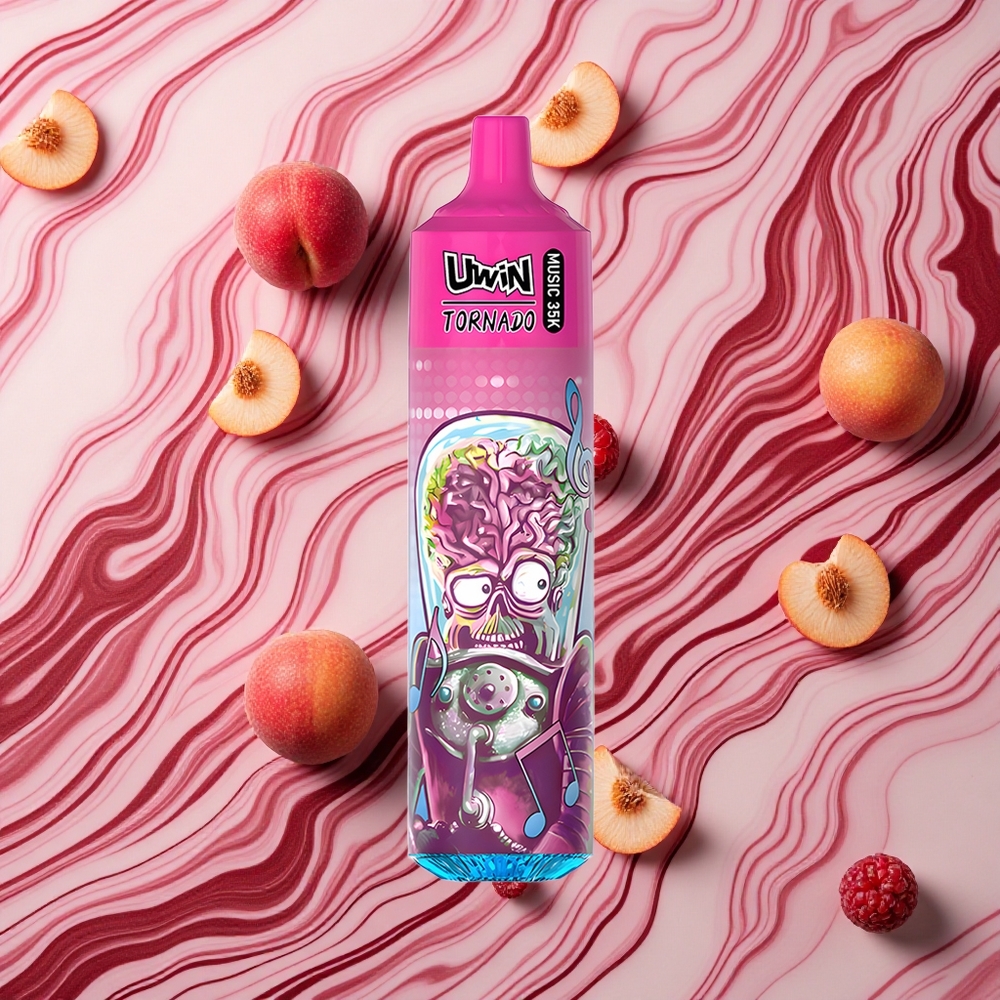 Persiku ogu garša Uwin Tornado 35K Music izmetamā veipa ar līdz 35 000 piepildījumiem un 600mAh akumulatoru