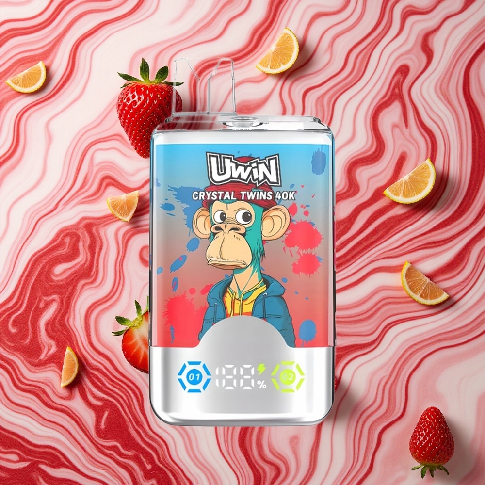 Zemeņu Arbūzu Citronu Zaļā Uwin Crystal Twins 40000 Išķūšanas Kapacitāte: līdz 40000 šķīstībām, E-šķidruma Ietilpība: 32ml