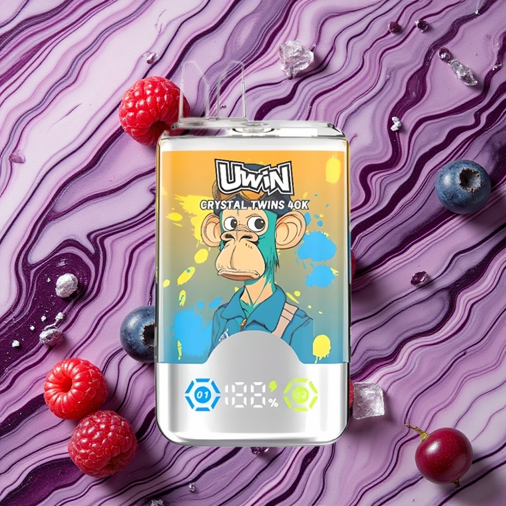 Zemenu Aveņu Ķiršu Ledus UWIN Crystal Twins 40000 Puffs Vienreizlietojamais Vape ar 32ml e-šķidruma ietilpību
